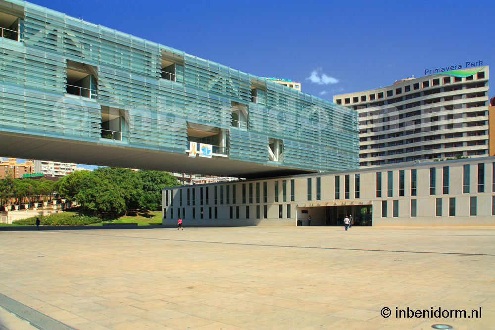 Stadhuis Benidorm admin 15 jaren geleden Het stadhuis van Benidorm ligt als een poort boven de ingang van het Parque de L’Aiguera in Benidorm Centrum Plaza de SS.MM. Los Reyes de España. (Parque de l’Aigüera) Tel: +34 965 855 500